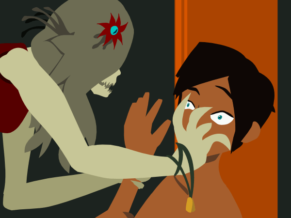 What he's crazy. It's for his own good can't he see that. He needs to stop looking at her like that. "Loogh awwhy."