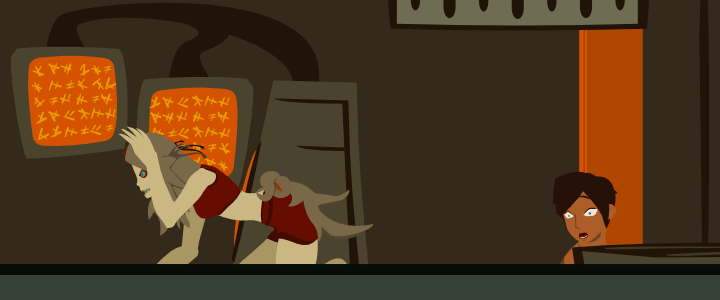 Alice moves past Blake, heading for the xotl. If she keeps eating maybe it'll stop. They don't have time to keep arguing.