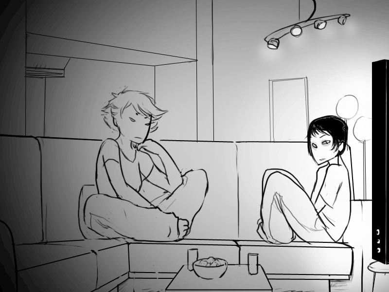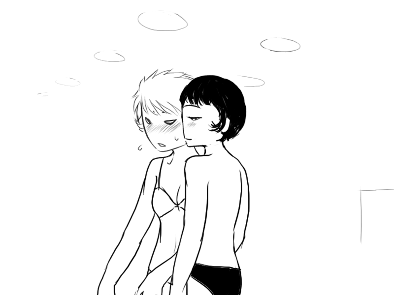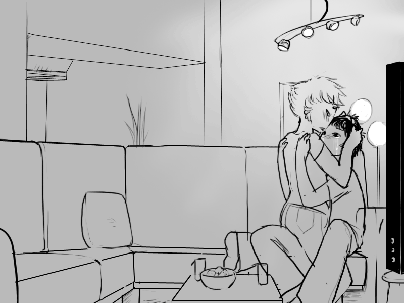 What came next, neither of them truly anticipated. He kissed her, she kissed him, their hands started to feel around. Before either of them knew it, they were tearing at each other's clothing, sending it scattered across the room. They took a moment to take in each other's naked forms, then did what came natural.