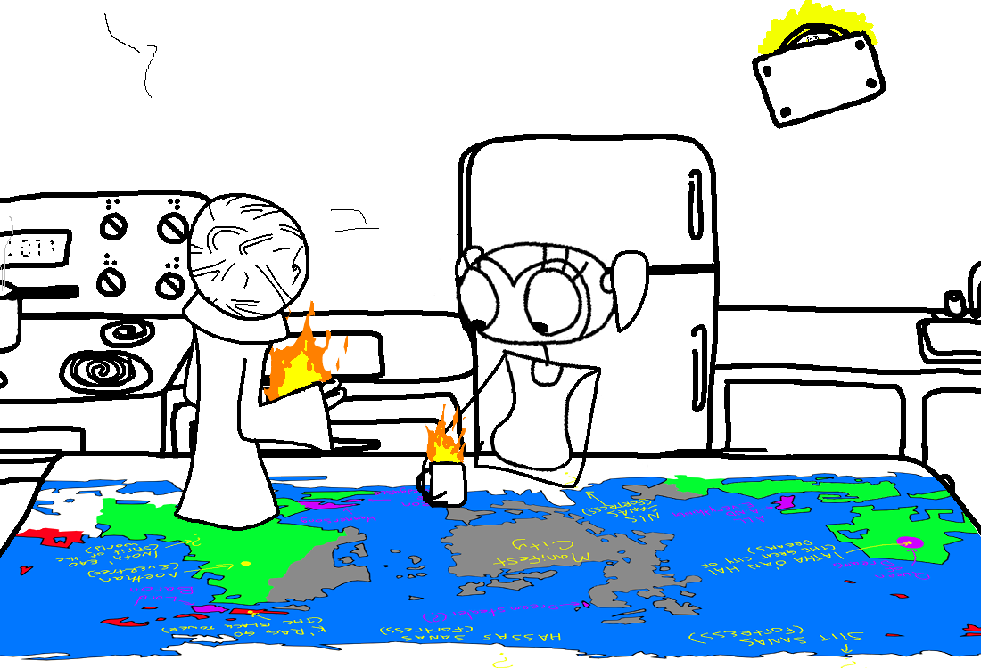 But, let me guess, she's part of a church, right! She's gotta be totally charitable and stuff! That's kinda the really bad part... like, I'd be willing to give her a chance. But let me give you a quick little rundown of the gods, just super quick. So you've got Heron, god of water, air and knowledge, and Hammersong, goddess of fire, earth and workmanship. You got the Queen of Dreams, goddess of dreams, life and charity, and the Dreamstealer, god of nightmares, theft and death. And finally, the- the kind of 'top gods', sort of, the most powerful two are A.A.E., goddess of machines, order and duty, and Lord Baron, god of magic, chaos and 'pleasure'.