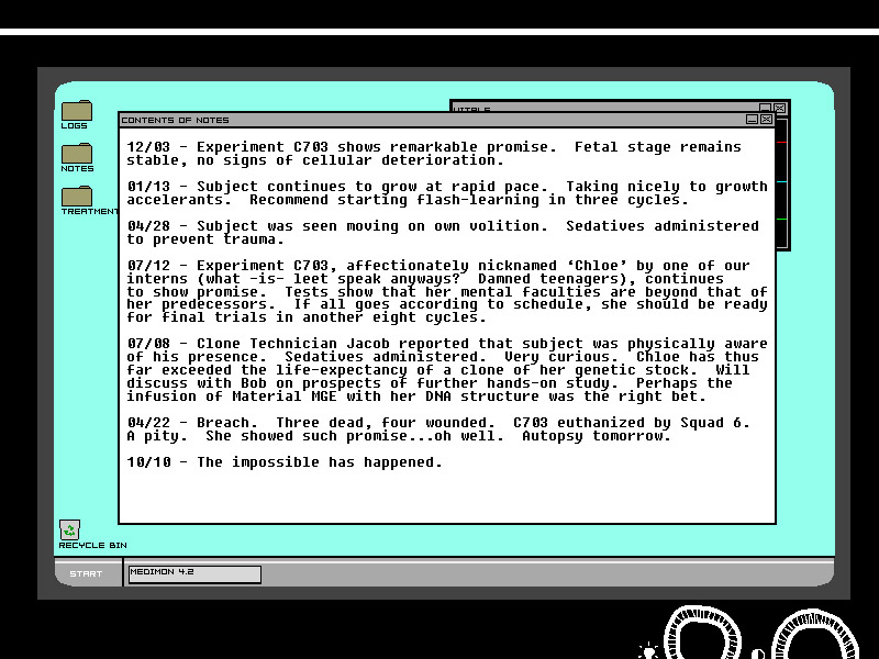 Magic and sorcery has faded to give way to science and technology, and you are a result of this 'new magic'. You were not born. You were created. And you were created with my blood surging through your veins. This is what gives you this connection with me. You have part of me already within you.