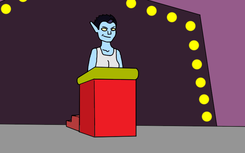 Frela Opim. My older sister. She's super popular and.. basically flaunts around constantly when on stage. I can't even watch her performances usually. That said, awful fighter, super weak. But she is uh.. 'charismatic' when she needs to be.