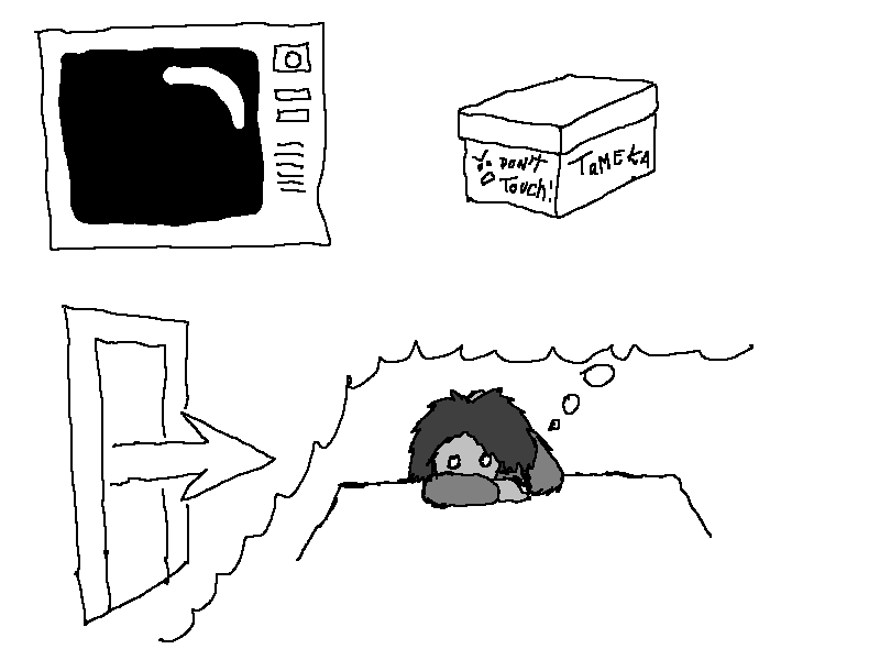 > "Hey! I worked hard on that box! It's not a doorstop!"
