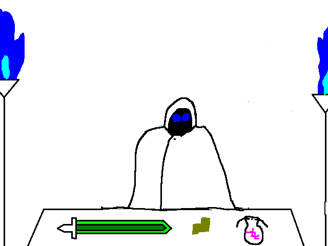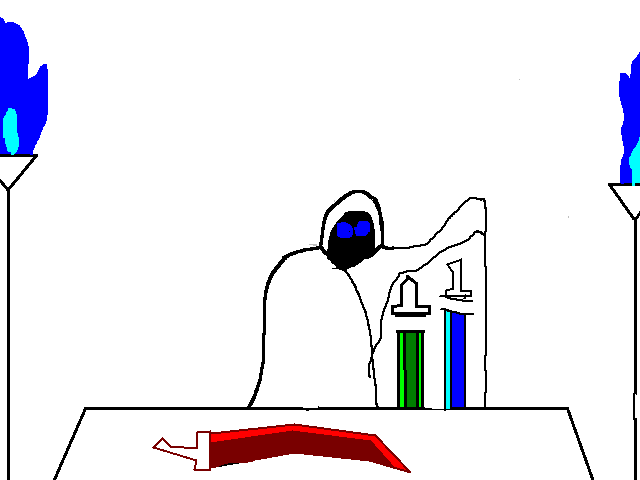 Remember that map I drew? This guy is the Lord of the Hunter clan. As such, he's the best archer, marksman, assassin, tracker, finder, and all around badass when it comes to hunting. His black leather outfit is stronger than most steels, but counts as beast hide. The Warriors, on principle, are Allied with the Hunters. He doesn't need ammo for that bow, either. He only launches one magical arrow from it... and thern they clone in midair, 2, 4, 8, 16, 32, and finally, a hail of sixty-four arrows from one shot. And he can fire five times a second. Last guy you want to piss off, especially here, because the arrows bass through trees and vegetation and walls.