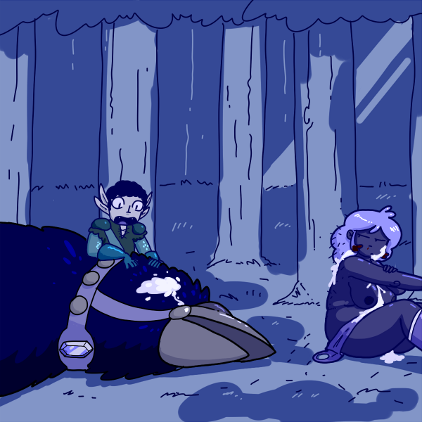 He scoops your spunk off Crowkor's eye, wiping it clear.