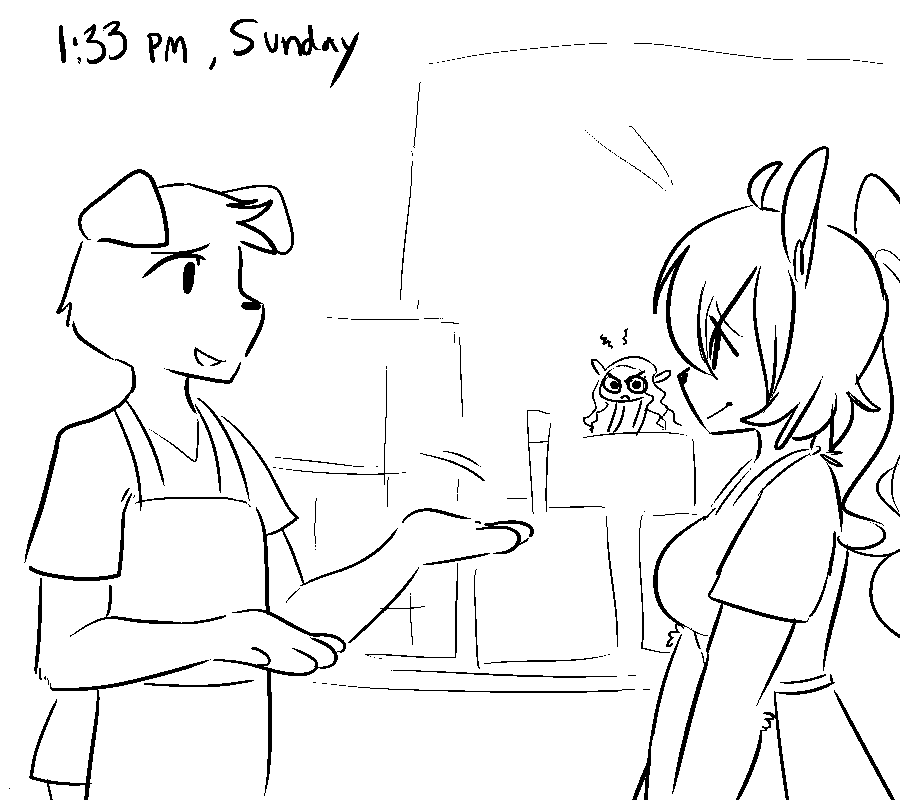 "Nngh...sure. Gimme a caramel latte or somethin'. A large one!"