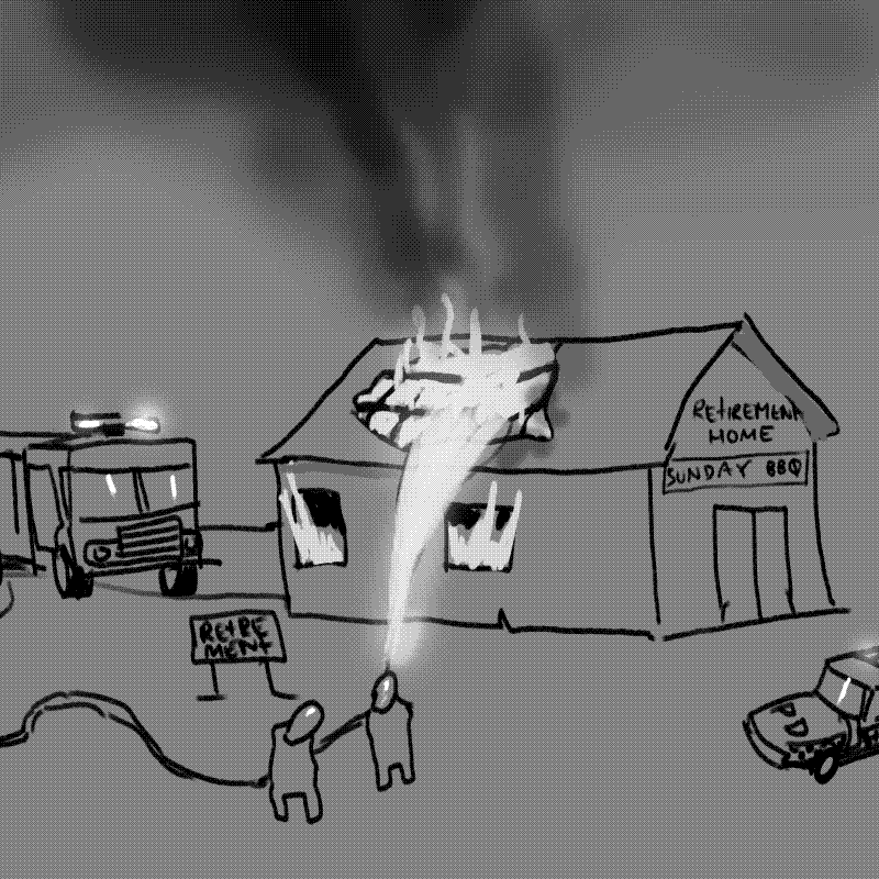 You manage to indirectly kill one very old, sick person through smoke inhalation from the fire you caused, and two people get second degree burns from touching the fire, but unfortunately the fire & rescue team gets the others out before you can kill any. That's a bummer, but the police are investigating it as a potential terrorist attack, so that's pretty cool.