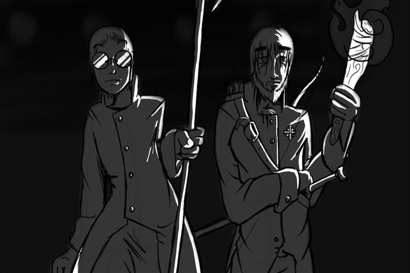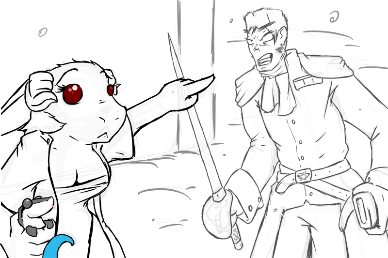 Gatling - Oh, that reminds me. Durindina? The guard captain, Gorrister, has angelic heritage. He has fallen, and has convinced himself he is a nigh-supreme divine incapable of fault. Could you show him the error of his ways?