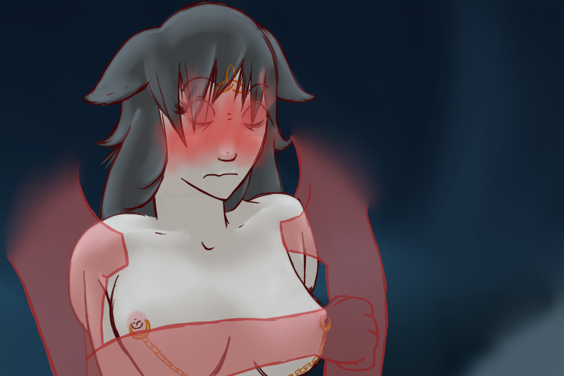 >Dina looks away shyly, all the while blushing, biting her lip with some acquiesce.