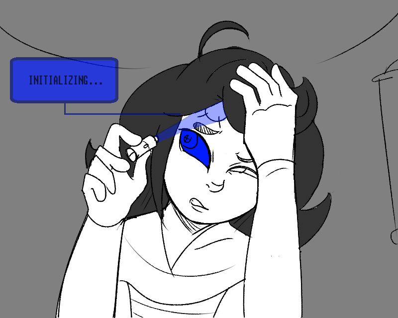 “One datachip, coming up. Bang Bang! The scan should only take a sec, but the program’s going to need some time to synch up to your OS. it shouldn’t take any longer than the next hour.