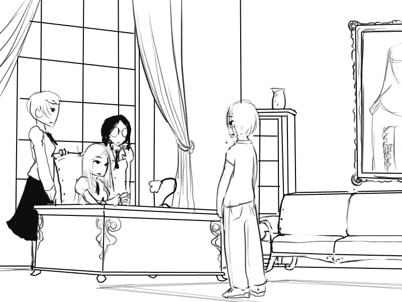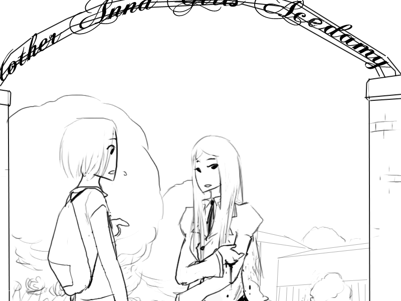 >"Marvelous. Let me just make a phonecall then. .... ..Good morning, miss Ametha. I am doing very well, thank you. How about yourself? Hmm-hm. Well, I have a visitor here with quite the problem. It seems that due to a mistake in the management one side of a set of twins has been completely left out of the records. Yes. Yes, if we hadn't caught this now she might not have been able to go to school. Yes. Yes, alright. Ebenezer. Ainston Ebenezer. Ainsley Ebenezer should already be in the roster. Yes. Yes, exactly, everything but their name is identical. Would you please? You are a darling, thank you very much. I will make sure she gets her uniform and books. Yes. Ofcourse. I shall, miss Ametha. Thank you again. Good bye. ...There we go. You are now a student at our school."