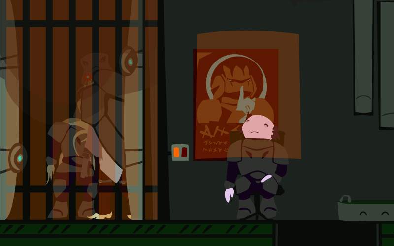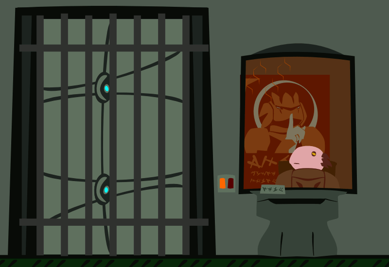 Alice could do that, but she presses one of the buttons instead. A can rolls into the bottom. Looks like one of those meaty smoothies she found on one of the other guards. Guess the xotl don't charge for food.