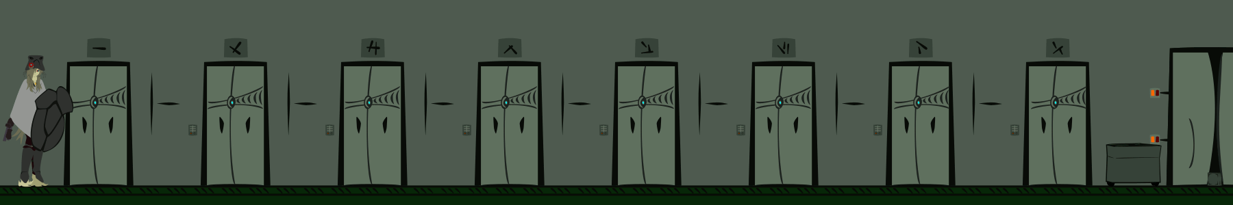 Alice gives it a little longer. The xotl grumbles to itself then picks some containers out of the dropper in the machine's base. It walks off humming to itself. There's a pause a little further down the corridor. The xotl juggles its load as it tries to open a door and then scampers through.