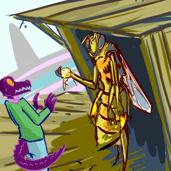 "Huh...do you think he knows anything about all this?" You scratch at the sting on your nose absentmindedly: that ointment really seemed to do the trick, it hardly even hurts."