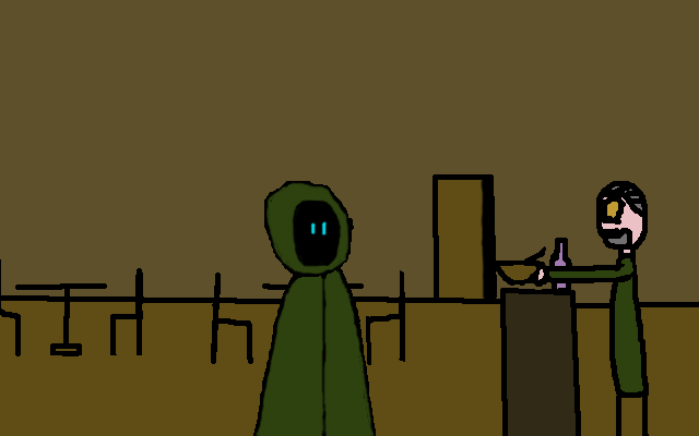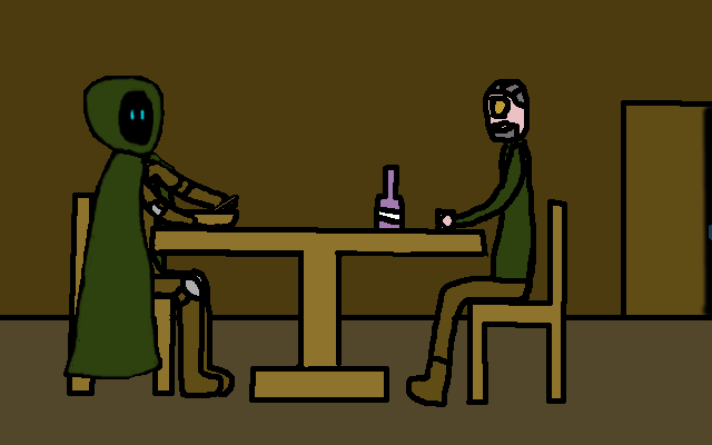 "Uncle" Ray: Well, It´s getting dark outside, Here, have some drink while I fetch something for you to eat.