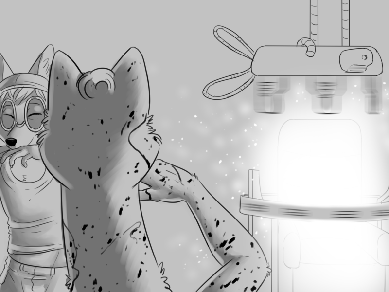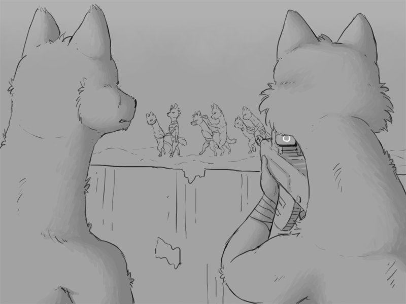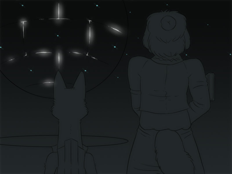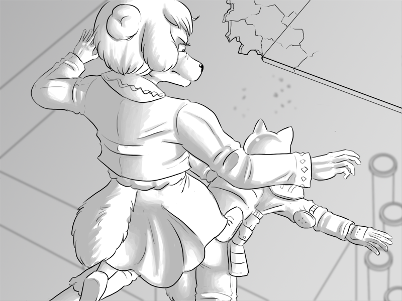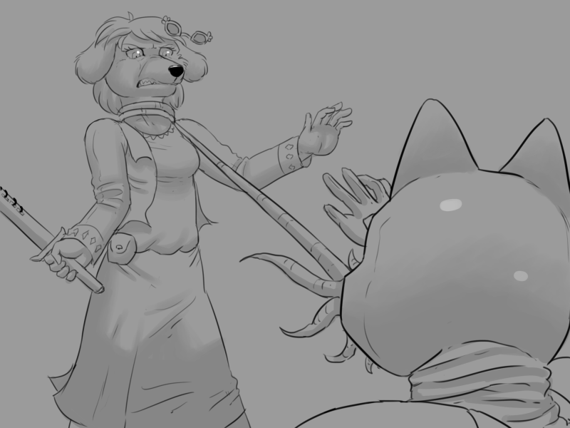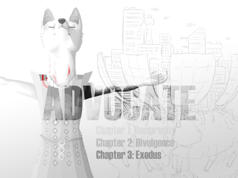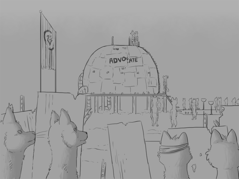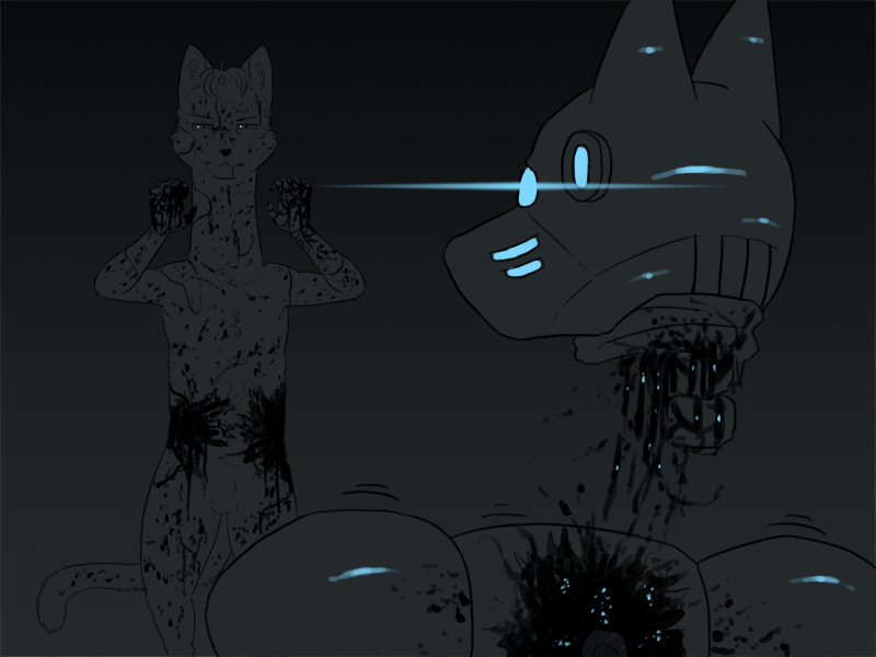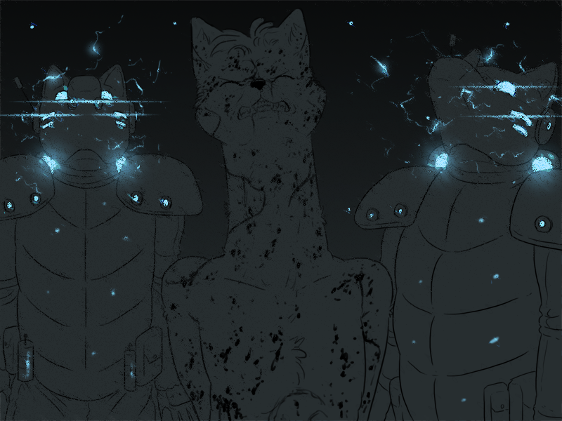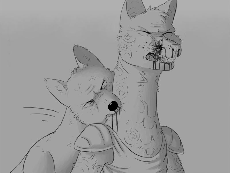 "You have to let go," I say, my breath hot and my fur bristling. "You are so afraid of letting someone else take the reigns. You keep talking about progress, but you are holding us all back with your stunted views, keeping us from growing, keeping this bloody war raging." The Premier hovers back a pace and chuckles after a brief pause. I add, "You have no worth here, old man. Just pass on. Look at you, all tied up to that horrible-looking thing. You don't even look like you're living a life anymore."