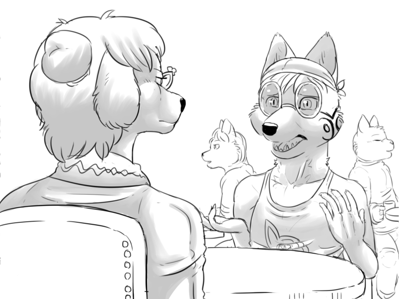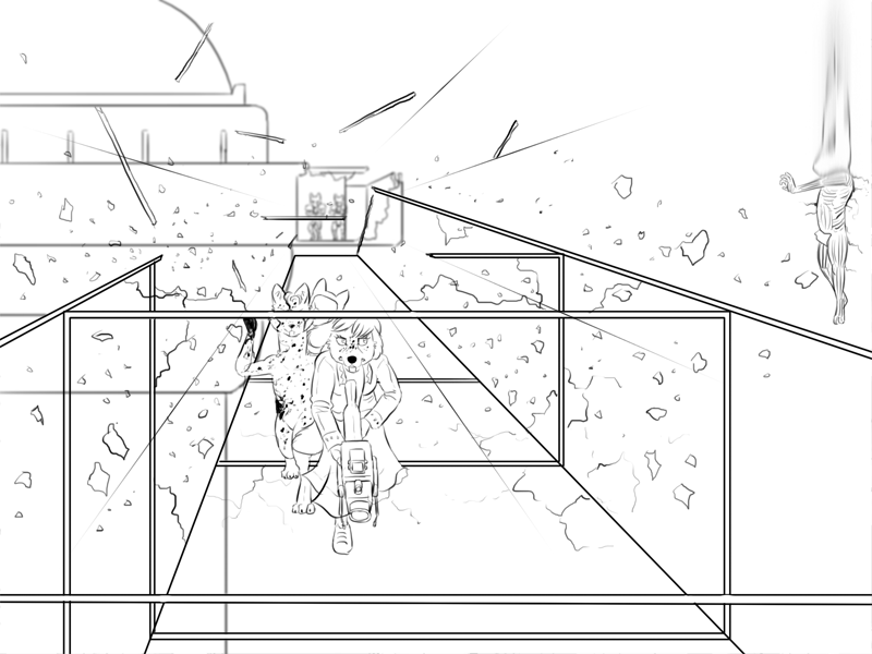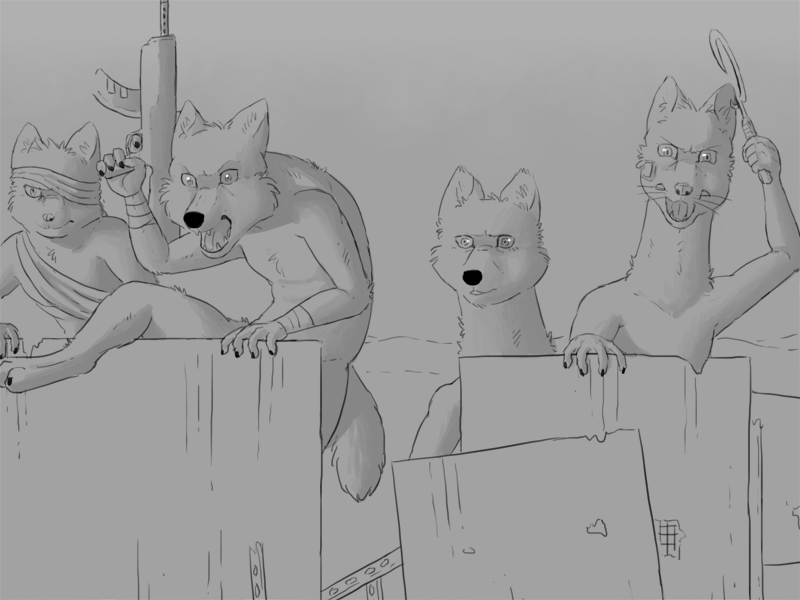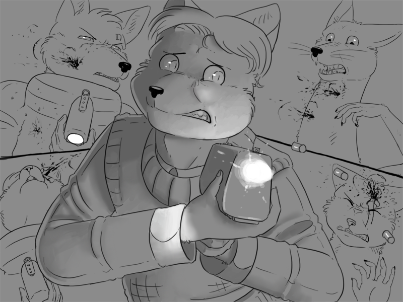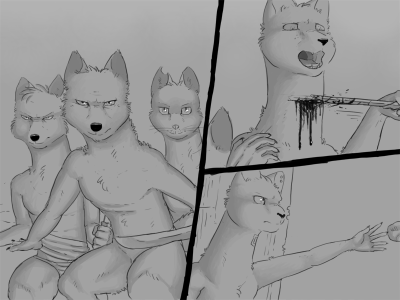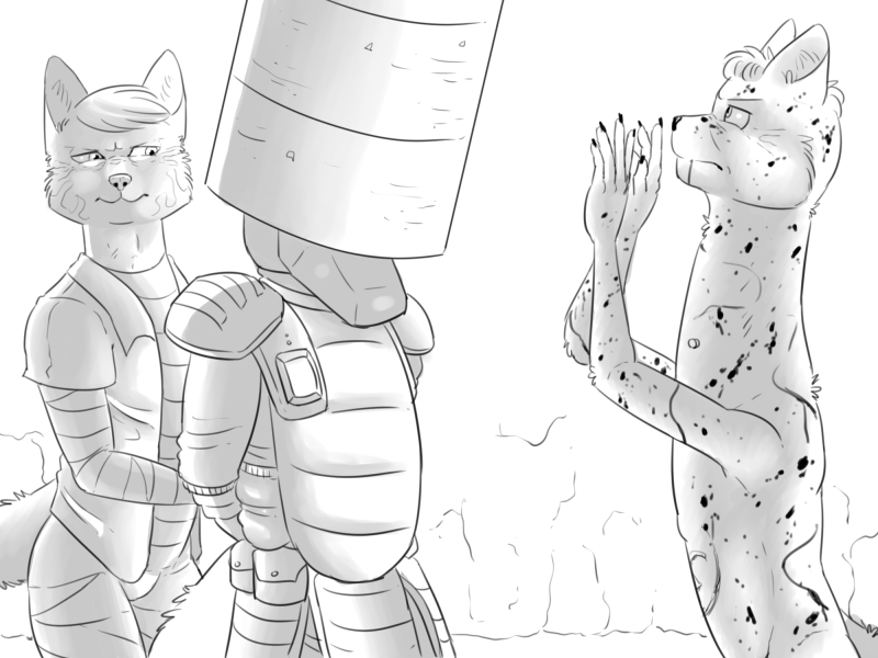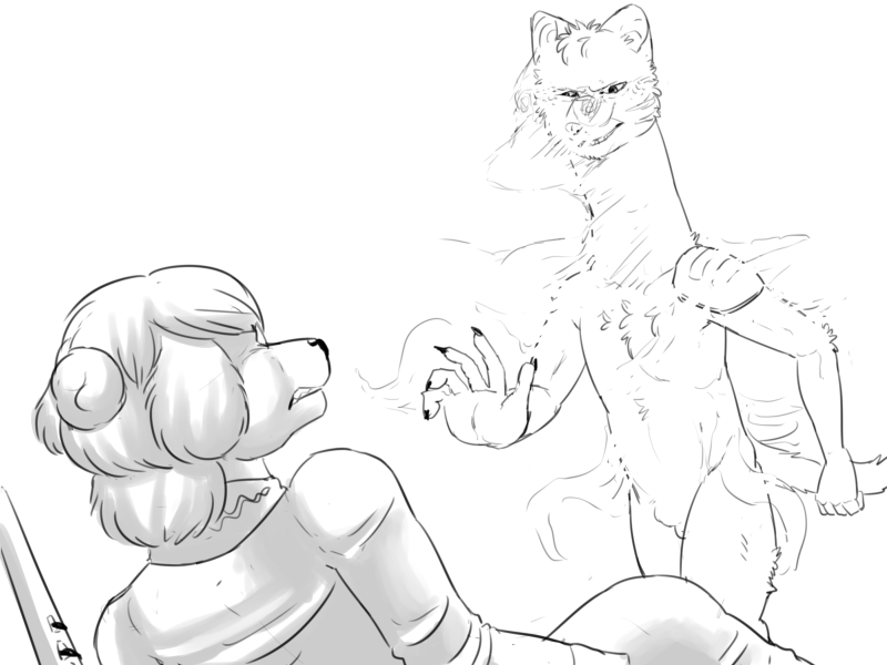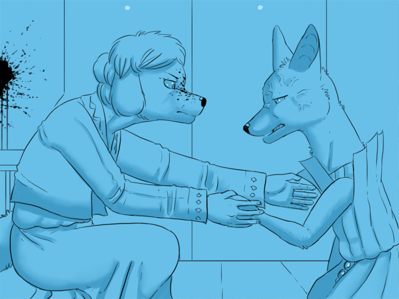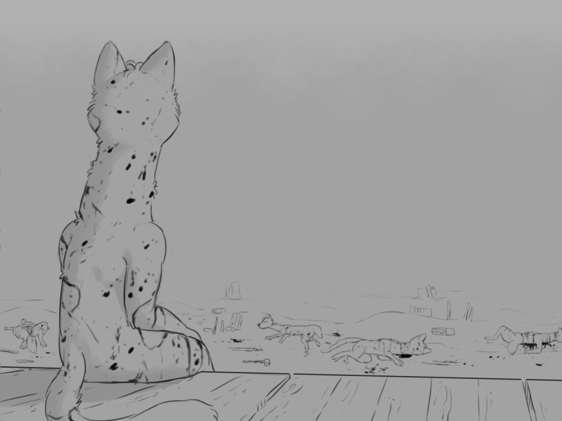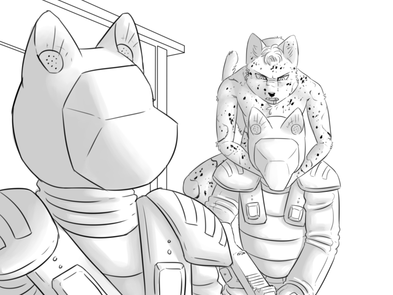 "You have to let go," I say, my breath hot and my fur bristling. "You are so afraid of letting someone else take the reigns. You keep talking about progress, but you are holding us all back with your stunted views, keeping us from growing, keeping this bloody war raging." The Premier hovers back a pace and chuckles after a brief pause. I add, "You have no worth here, old man. Just pass on. Look at you, all tied up to that horrible-looking thing. You don't even look like you're living a life anymore."