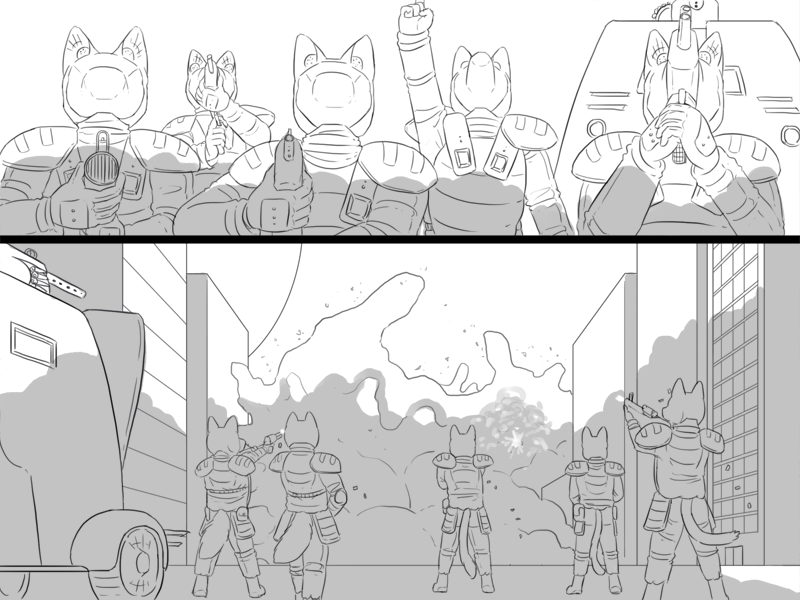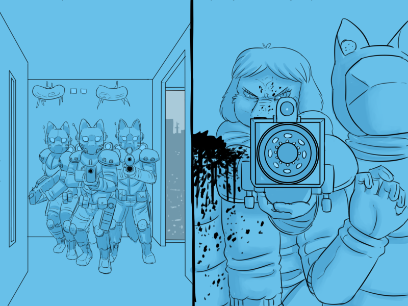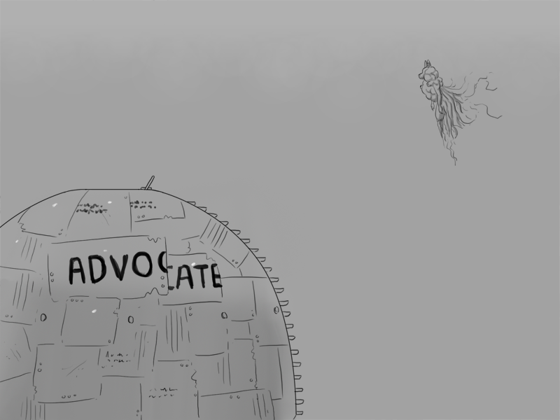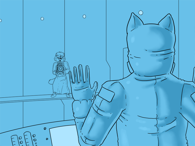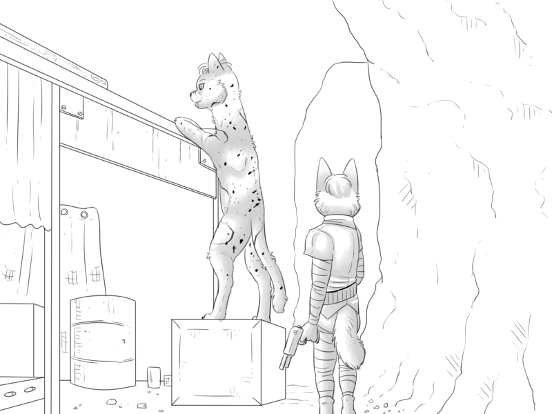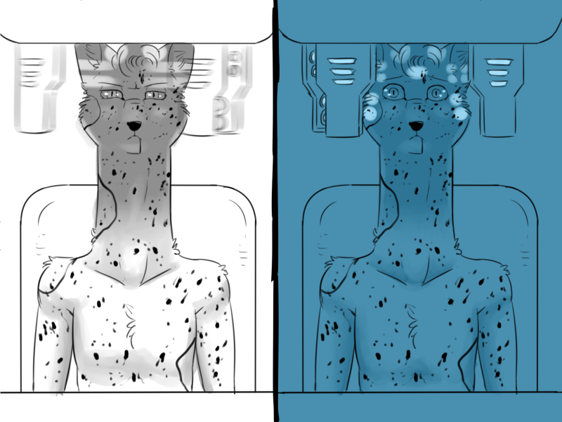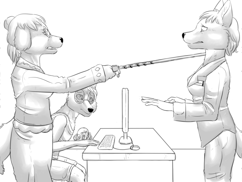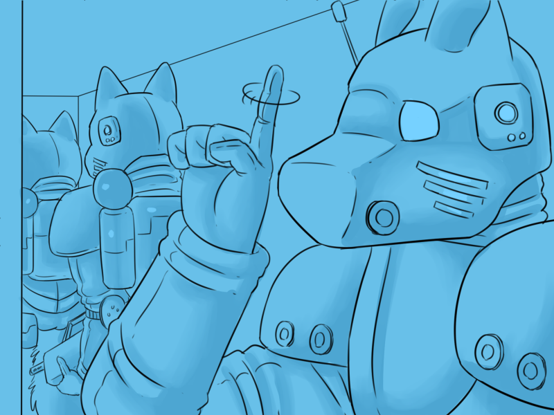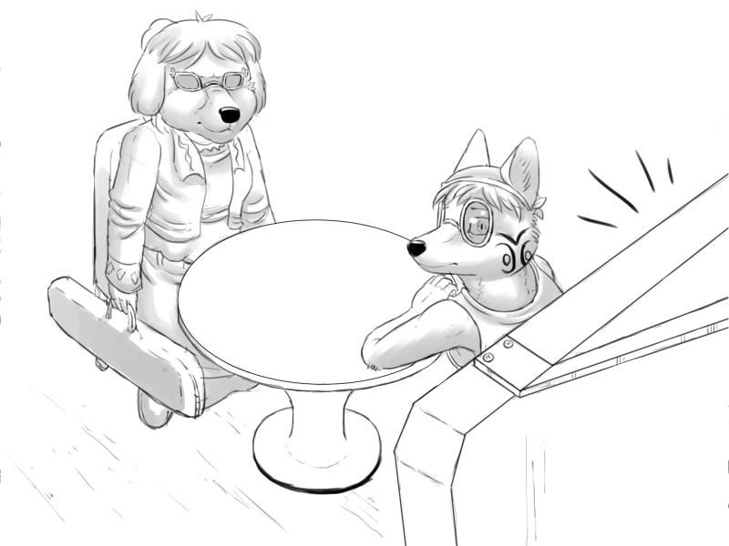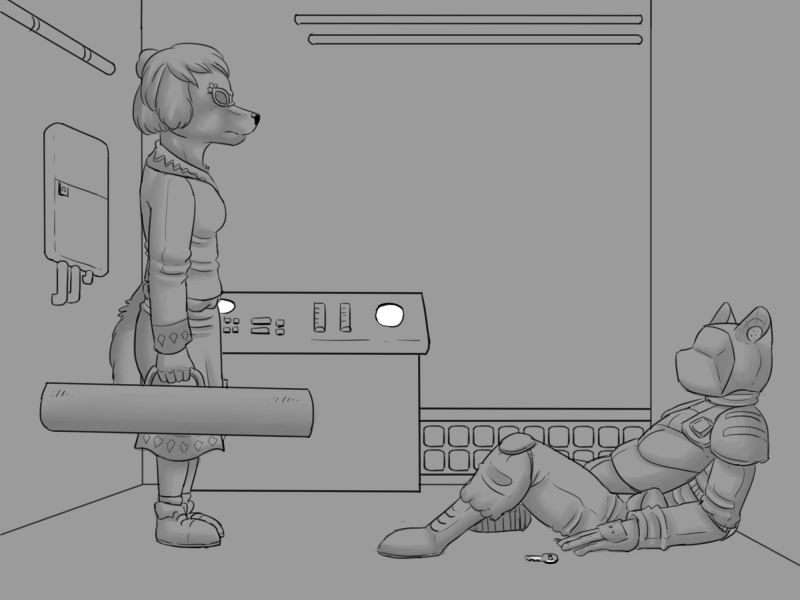 "You have to let go," I say, my breath hot and my fur bristling. "You are so afraid of letting someone else take the reigns. You keep talking about progress, but you are holding us all back with your stunted views, keeping us from growing, keeping this bloody war raging." The Premier hovers back a pace and chuckles after a brief pause. I add, "You have no worth here, old man. Just pass on. Look at you, all tied up to that horrible-looking thing. You don't even look like you're living a life anymore."