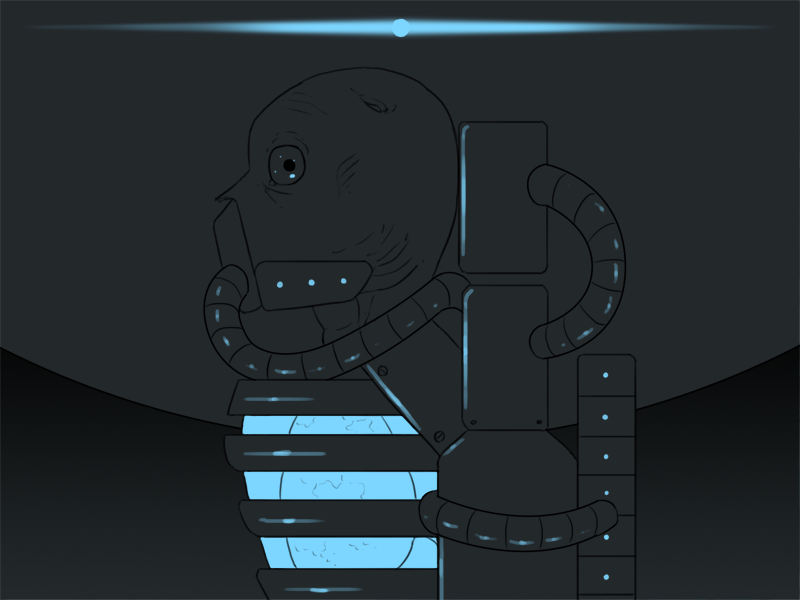 "This technology still needs to progress, and must be allocated to higher priority research, that of which you are seeing right now." He turns to face the large spherical object. "What you and that officer are doing right now is receding progress. It would have been better if you perished in the Middle." I feel a boiling fury at this statement.