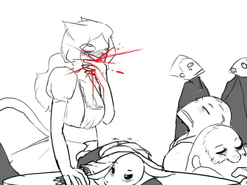 Ahem, well, let's see. If this lady is indeed a Blutjager, then we can expect much of the same power as we saw from Raital. And our dear Kobold is quite incapable of defeating someone in serious combat. Remember last time characters resorted to a terrible threat with physical action? I believe it resulted in eye lasers and bad ends, but I could be mistaken.