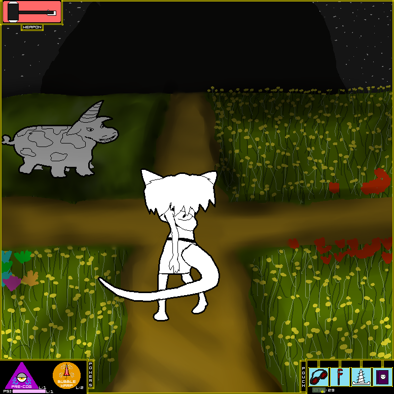 There was a long pause, before she smiles, "I'm Mint by the way. Plenty of Rainbow Leaves for myself. If you have 3 points I'll give you the rest of my Bubble Dust. Otherwise I really have nothing for you, and I don't want anything except rare liquor and shrooms. I have no interest in leaving my hut. No one bothers me. If none of that involves you, right fuck off, miss."