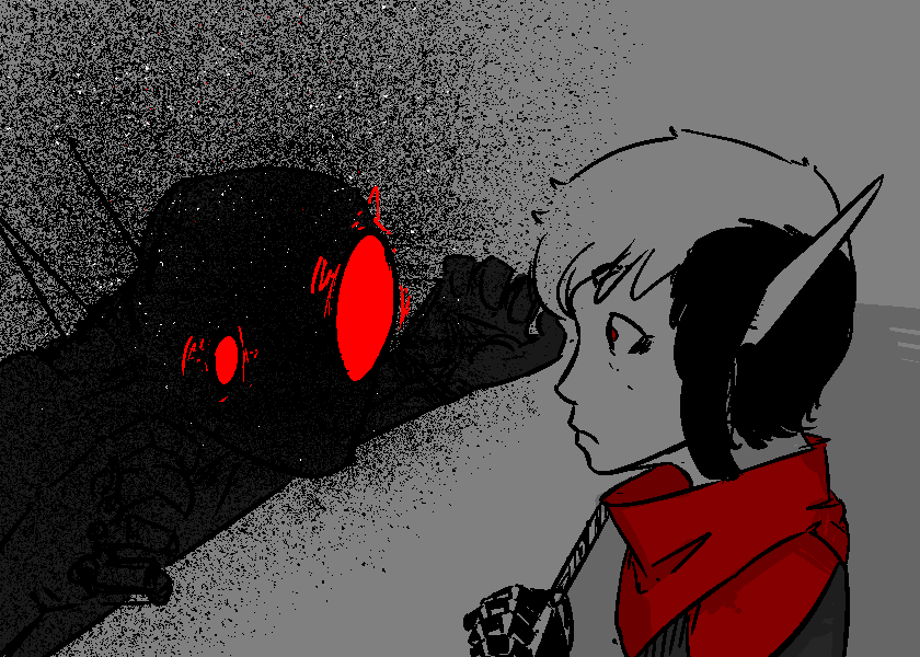 “Why did I- are you familiar with the grand utopian ideal? Great cities of science and technology that sweep in to save mankind? Pure. Fiction. We’re fed these narratives of how we’re marching towards a bright new future, when what do you see outside? Gas bombs, global warming, mass extinction. Tuna went extinct recently. TUNA, for fucks sake! Meanwhile, we’re gleefully throwing soldiers at each other, stitching them back together, and throwing them back into the fray. And all that grand tech we’re all supposed to have at our fingertips? Suffice to say, the price tags are left out of the commercials for a good reason. This whole world is seeing two classes of people become more and more separated. Us, who get stuck footing the bill, and them, the ever shrinking circle of people who can afford to lift themselves out of this shithole.”