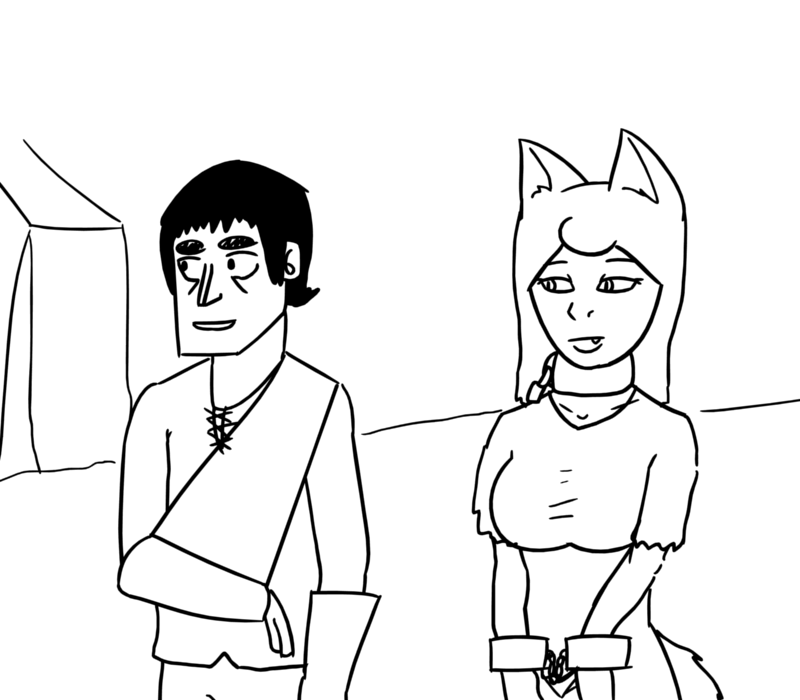 "Well we can't have someone like you walkin' around with no armor, no weapon, can we? Now I'm thinkin' that someone like you, a Solis. All healed up, a brand new slave in tow. Would look damn good in a nice black tunic an' cape."