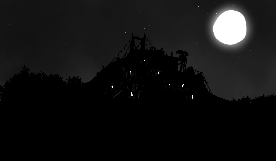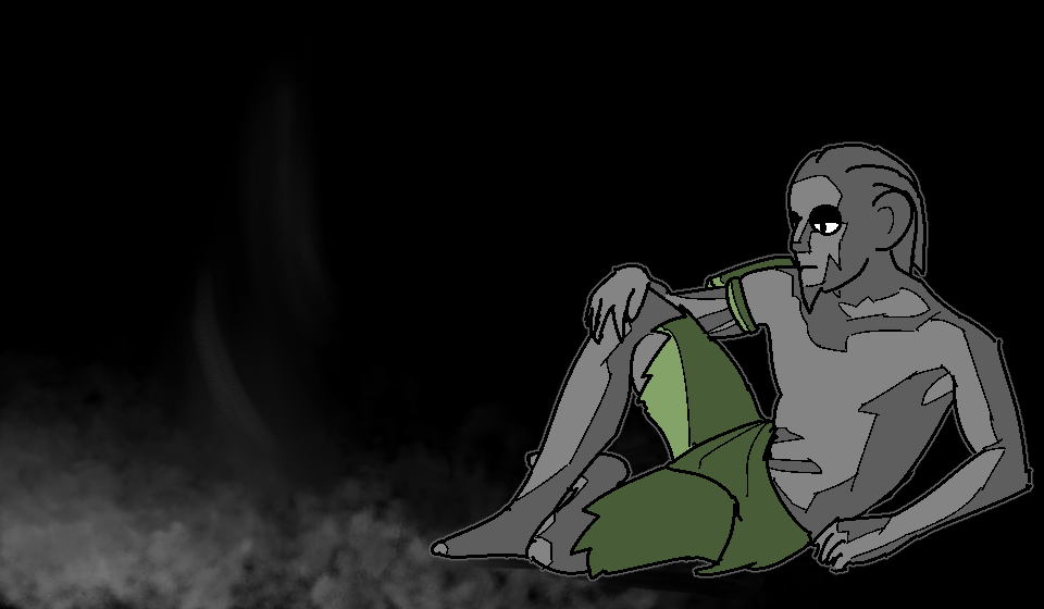Bruco pulls his hood off. His lips, green from smeared beetle-powder, curl into a grin.
