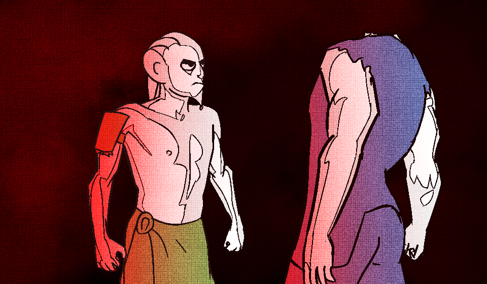 She drops between the stakes into the fighting pit and lets her viper aspect knot itself up her shoulderblades.
