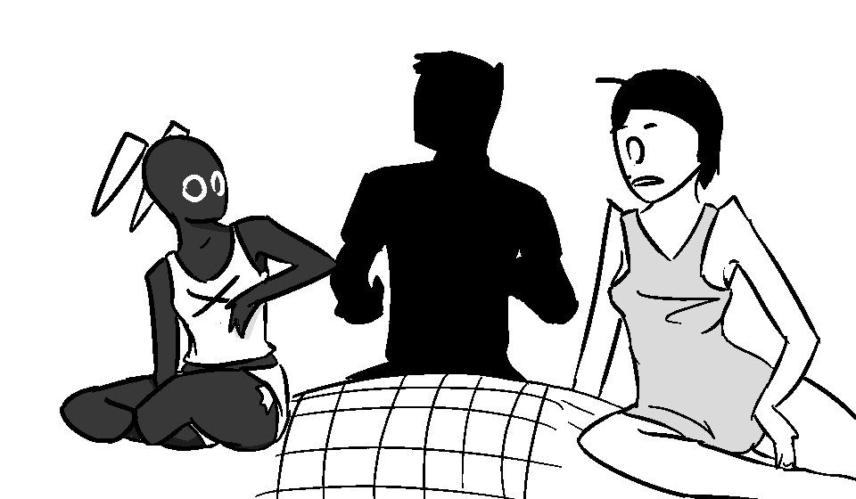 "Now you have us." Polyphema puts an arm around Meg. "Well Zack, mainly, but us if I can get you drunk enough."