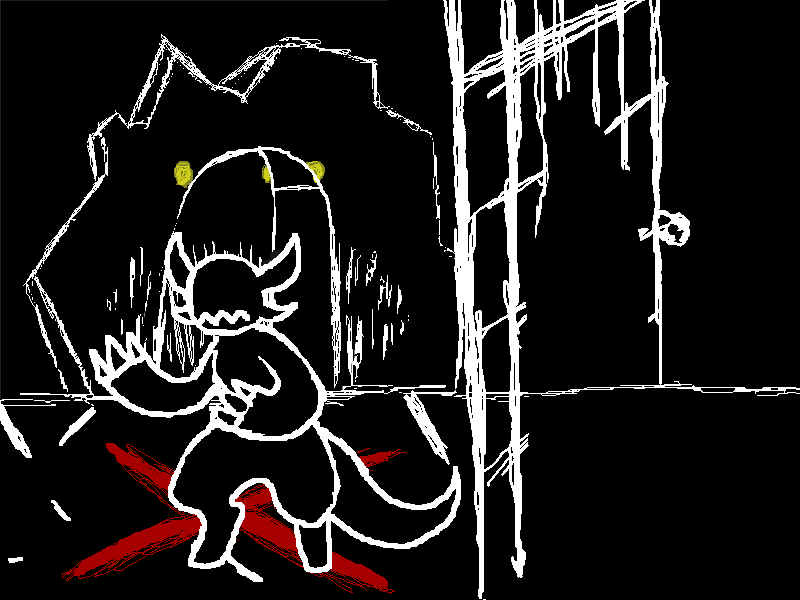 if attacking doesn't do shit then we just have to find a way to get rid of her. problem is, unless Nomi can devour her whole and leave nothing left we don't really have a way to beat her outside of items that we have no idea how they work... expects the sacrifice but it doesn't really help now unless it could upgrade someone with something that will let us win.