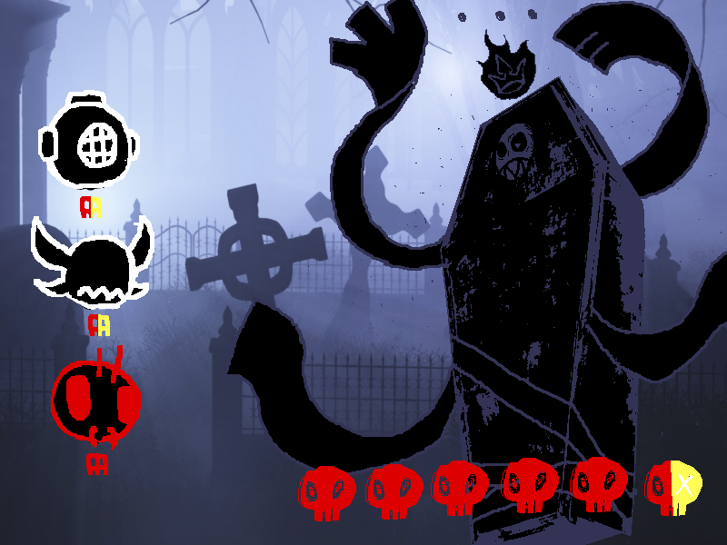 >NOMI uses glutton! She deals a skull and recovers half a skull in health! She'salready full health, though.