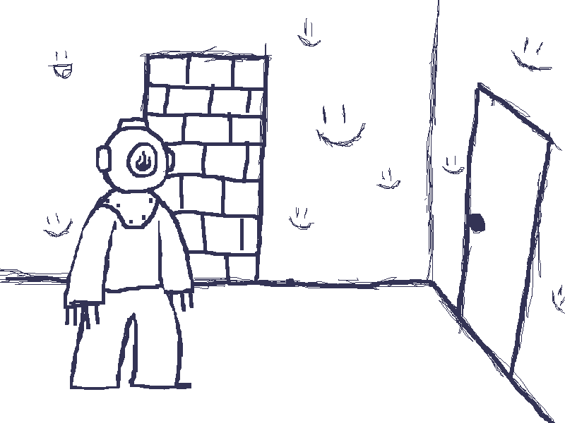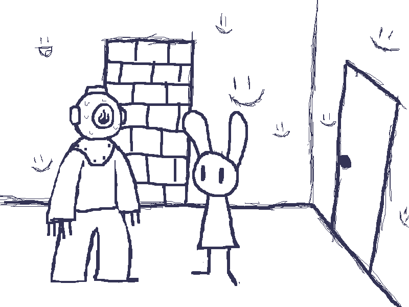 >These are scribbled onto the wall. You give them a little push anyway, just in case.