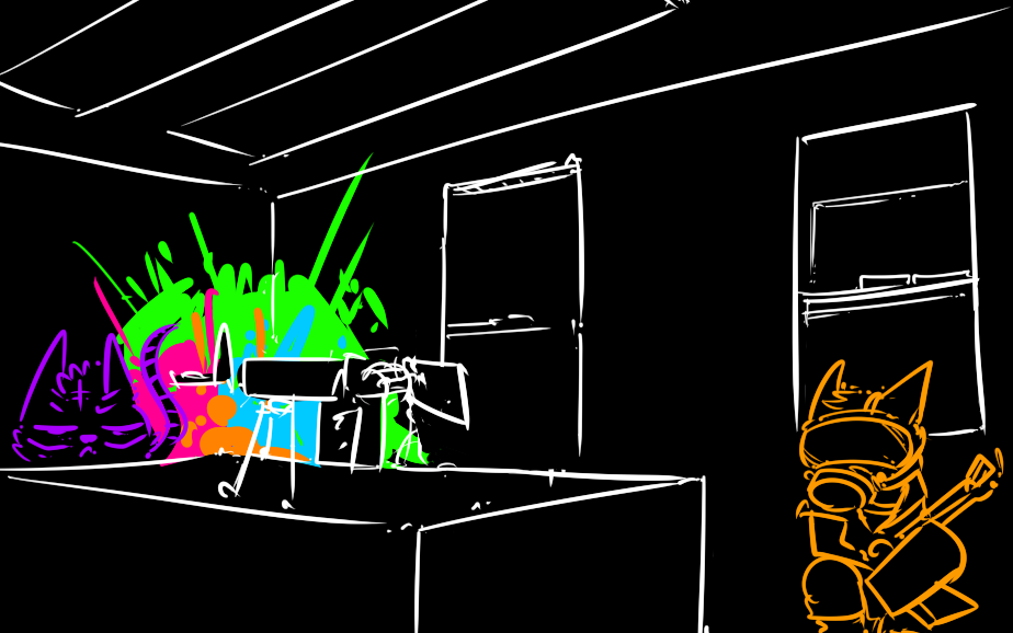 I nod. “hahHHAHahhHA- ahem, good. They should be kicking in soon. The mixture is a little lighter so you shouldn’t get any of the side-effects the others got. That said, if you start to see weird shit, don't worry. And by don't worry I mean freak the fuck out.”