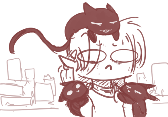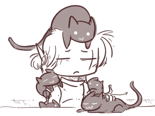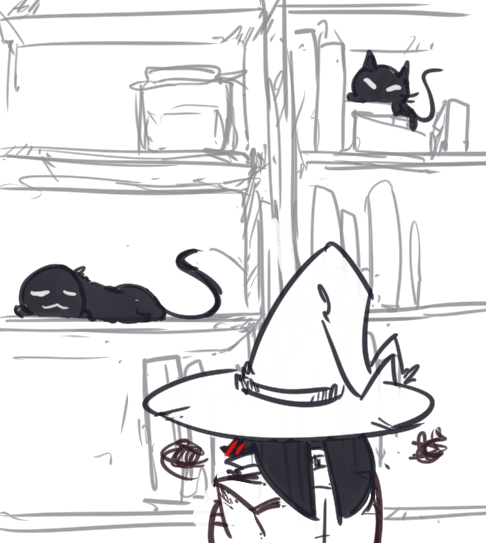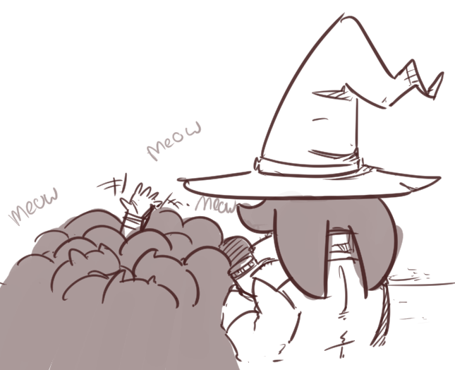 They walk off somewhere, leaving me alone in a room full of strange magical contraptions. Those ‘cats’ all over the place start congregating at my feet and making weird noises at me.
