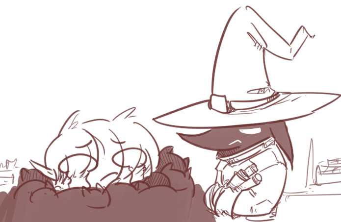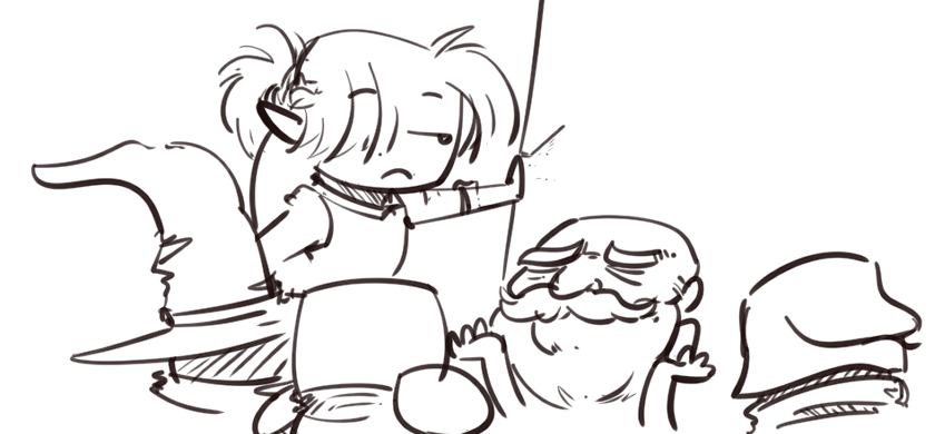 “Oh I don’t know, you know kids. Always on about precious heirloom this, priceless artifact that. If I had a nickle for every wide-eyed hero coming to me about a ‘timeless artifact of great strength’ they need to defeat ‘the ultimate evil destroying all the land’ I’dve retired by now. Sometimes it feels like these ‘great ancient artifacts' are growing on trees. Where do they all come from? Did some blacksmith thousands of years ago spend all day forging magic swords thinking ‘gee 1000 years from now this will help in an oddly specific scenario. Always swords, too. Why swords?” They walk around the room, grabbing armfuls of various books, wands, and vials. In the process they pull out a box full of weird looking swords. “Don't mind those, they’re just experiments. I’m probably going leave them at the bottom of a dungeon somewhere. Maybe stick one in a stone.”