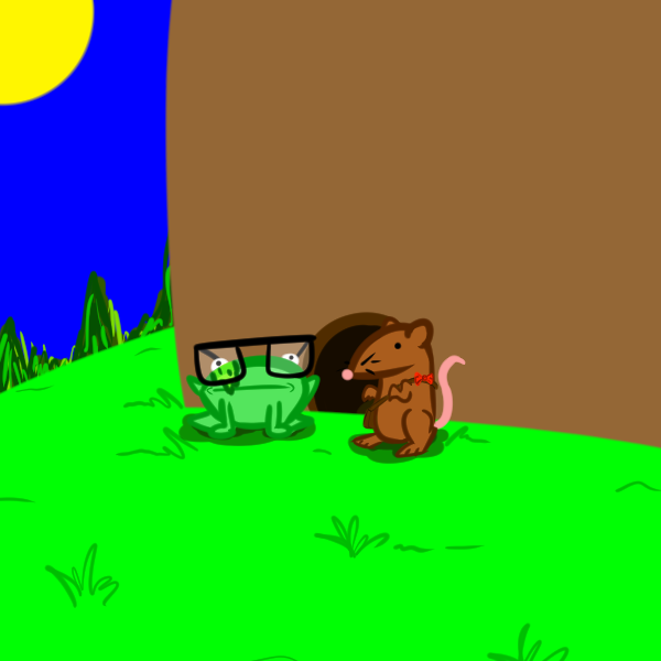 Miss Rat: "Squeek." (If you at all start to not understand what I'm saying, tell me and I'll give you more mushrooms.) "Squeek." (I made sure to bring enough so that you'll be able to understand rat by the time we run out.) "Squeek." (That said, try not to hear other animals talking too much.)