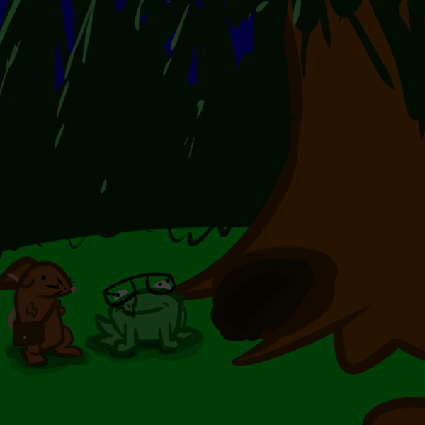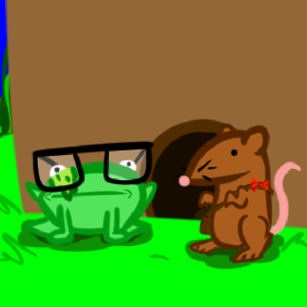 Miss Rat: "Squeek." (The coast looks clear.) "Squeek." (My Sisters place is a weeks journey from here.) "Squeek." (Unless you still have any unfinished business here, we should get moving before nightfall.)