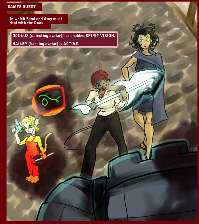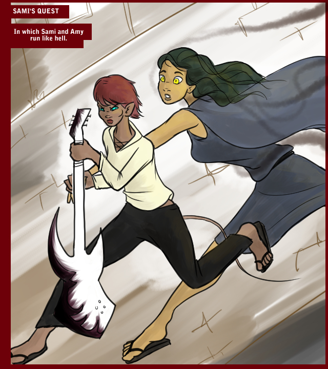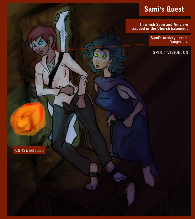 Sami: OK fine, Amy helped me transform again with the river to help me deal with things and instead I got really big breasts and webbed fingers.