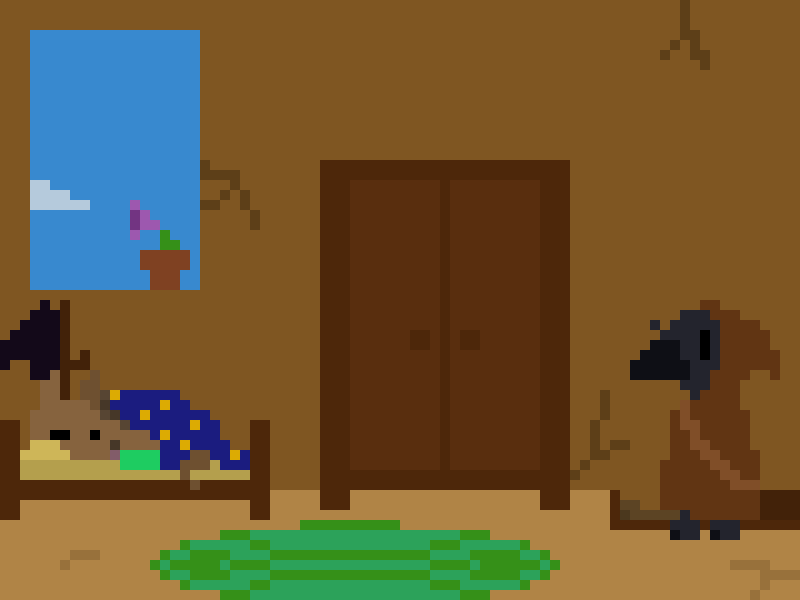 Stick together with Lucy in watching over Emerald while you guys gather up supplies, you can keep chatting while having an extra pair of eyes on her. You might need to make some sheets into wraps for Lucy to help protect her from the sun and sand while you guys travel the desert.