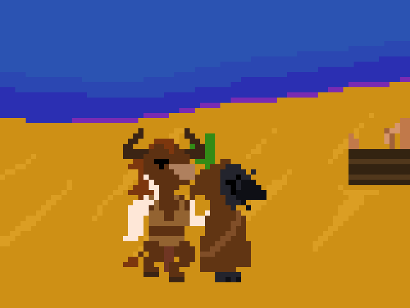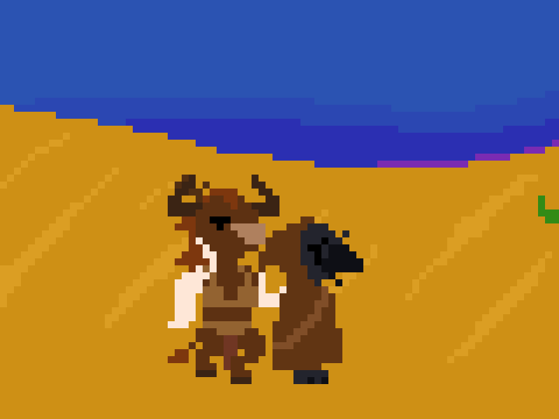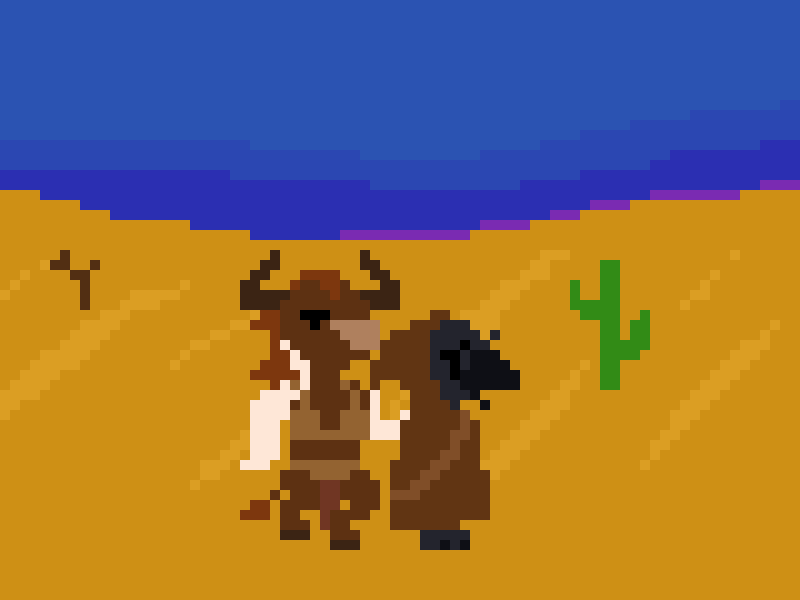 Raven: "Alright. Before we try and cross the desert, we'll need food, water and rest a bit before we go."