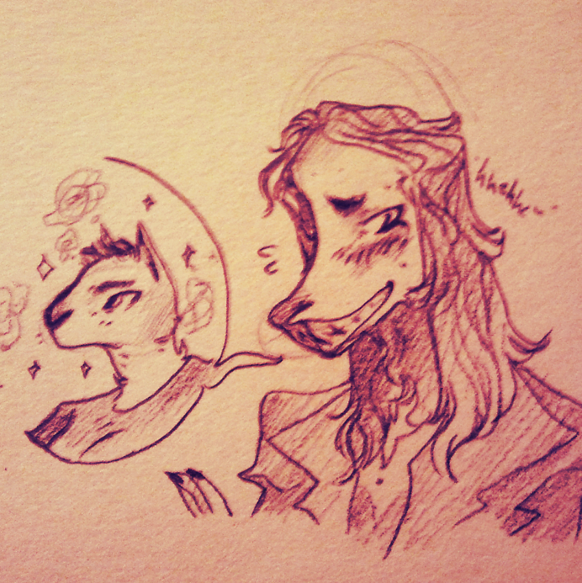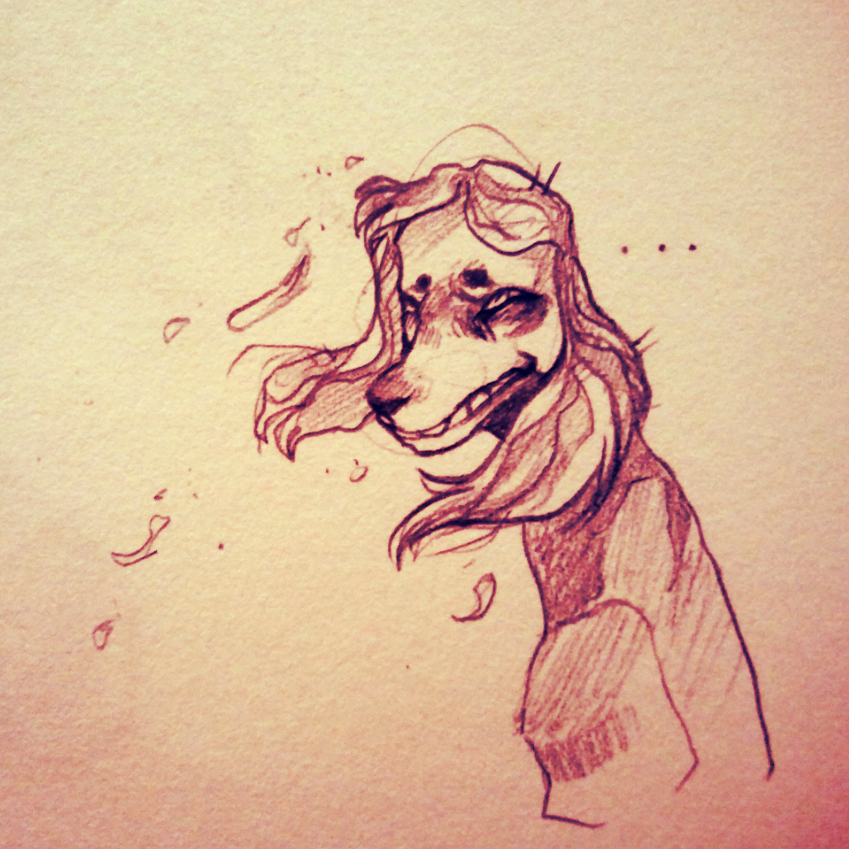 There's a commotion from the shed, and the sound of something slamming against a table. The door swings back open and Cassandra walks out, followed closely by a short, pale-haired rabbit.