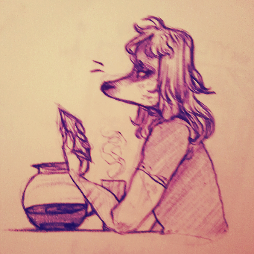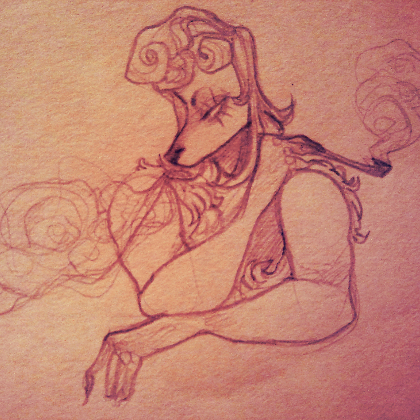 "I said, you got any smokes?" She snaps her fingers, irritably. "I can't work without a smoke break."