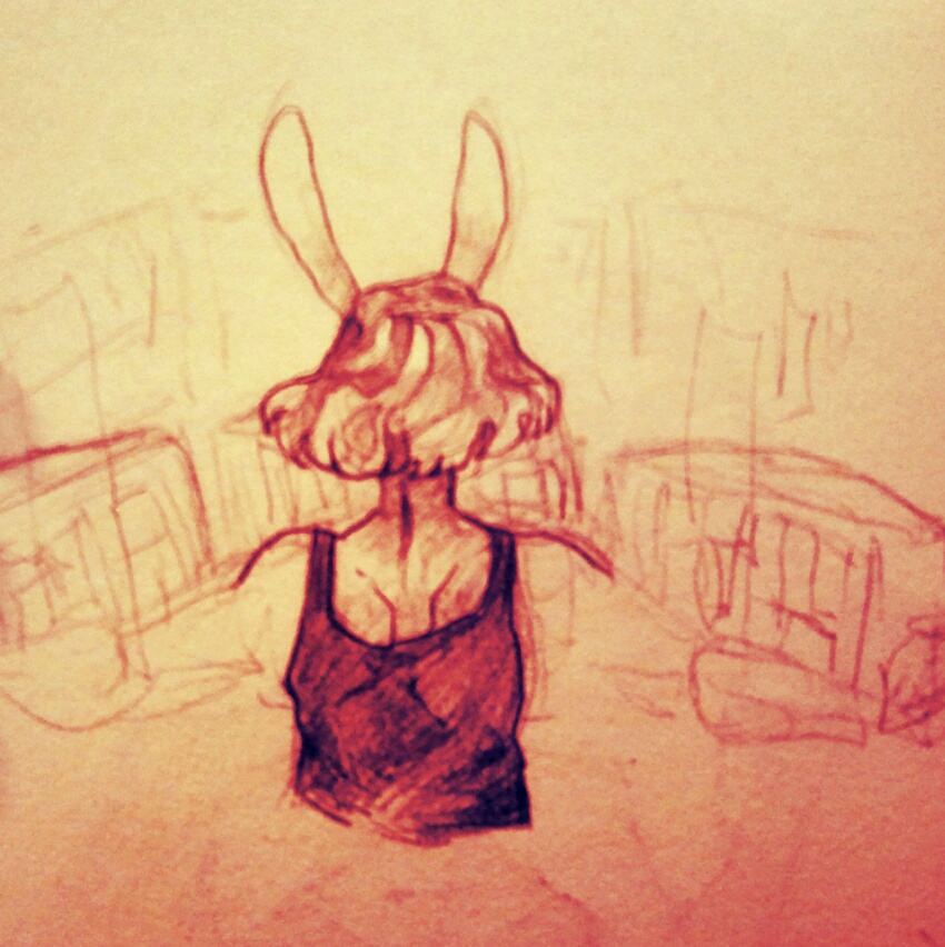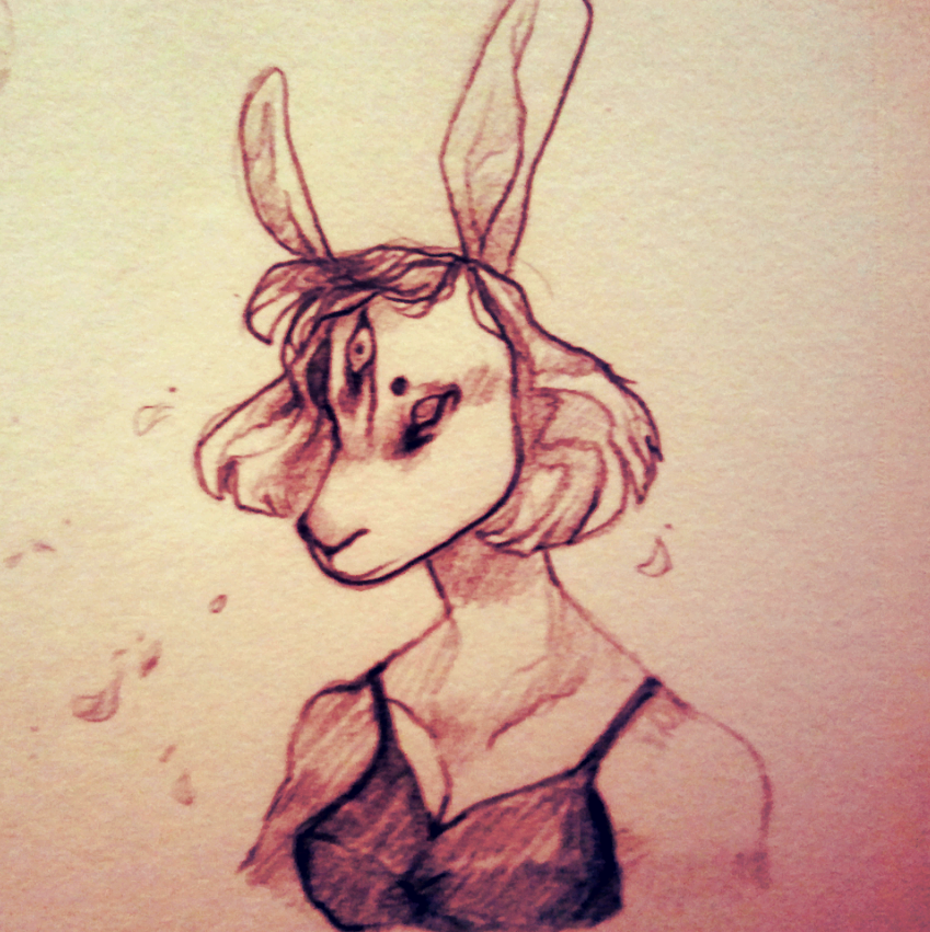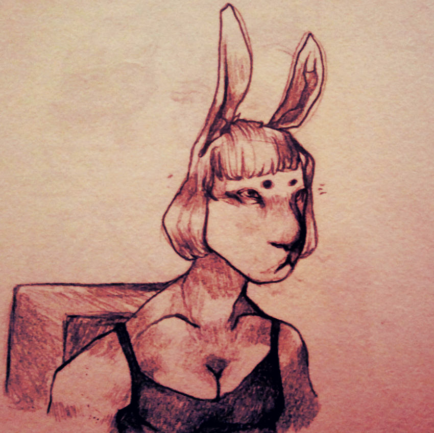 "...Ohhh." The rabbit's eyes flash with what appears to be the barest amount of recognition. "So you're with that cunt downstairs," she finally says.
