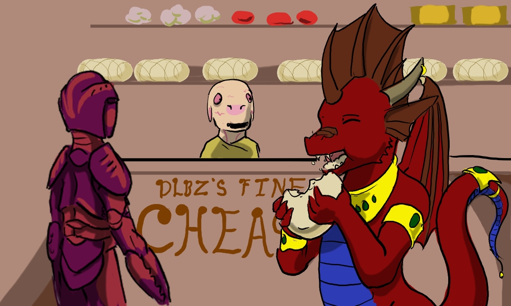 I can't use anything in the toy store, and I don't want to eat a sailboat or anything. >>73200 Oh yeah I love cheese! It's way better than eating rocks or something tasteless. I ask how much one of the cheeses is, and the guard interjects and says that I'm a special guest, and that he will pay for anything I want! I'm so hungry, I accidentally ate the whole thing.