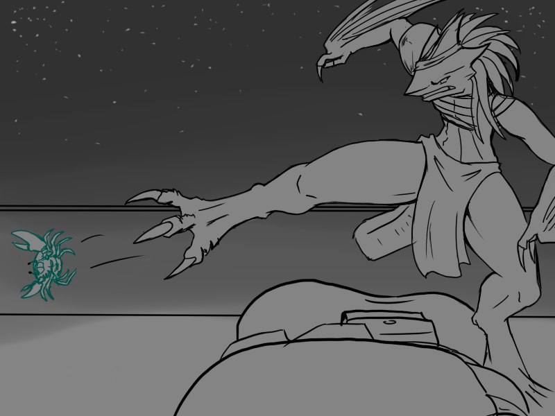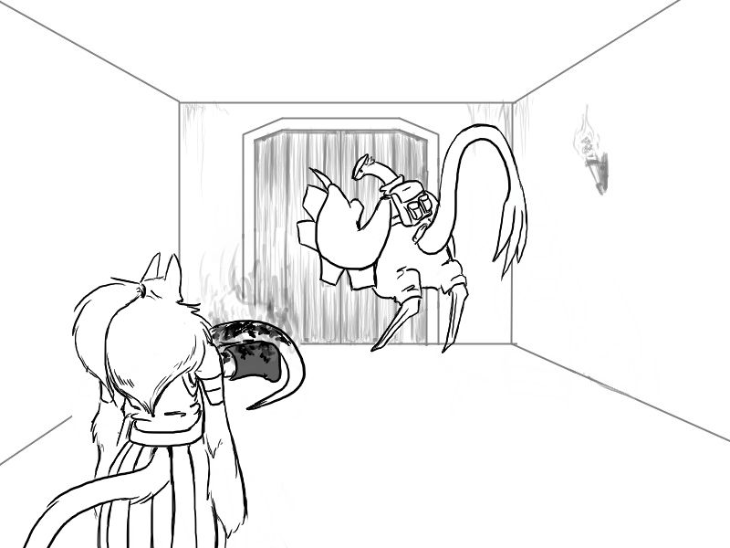 Now, Deme. This will hurt, but not as much as being killed. If you're only exposed to fire for a short moment, if you keep moving, it won't badly injure you. I suggest that you attack with the cudgel. He will use the fire, I think, and probably block it again, but that's ok; use the momentum to swing under as quick as possible and drive your leg up under his ribs.