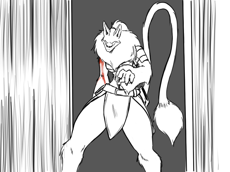 Ok, right. We've set it up. Deme's been using upper body for the last few attacks - particularly, with a big, heavy, intimidating, and above all attention-grabbing cudgel. That is what he will focus on.