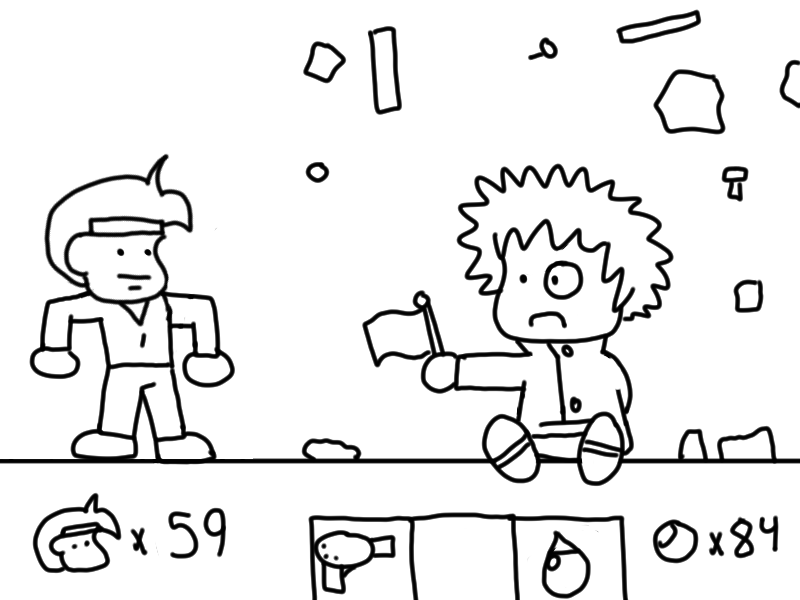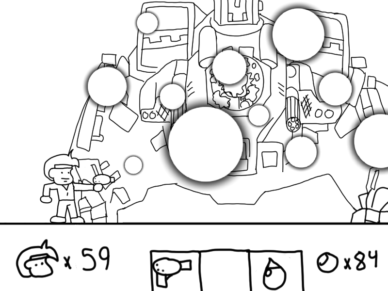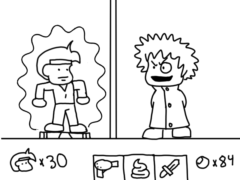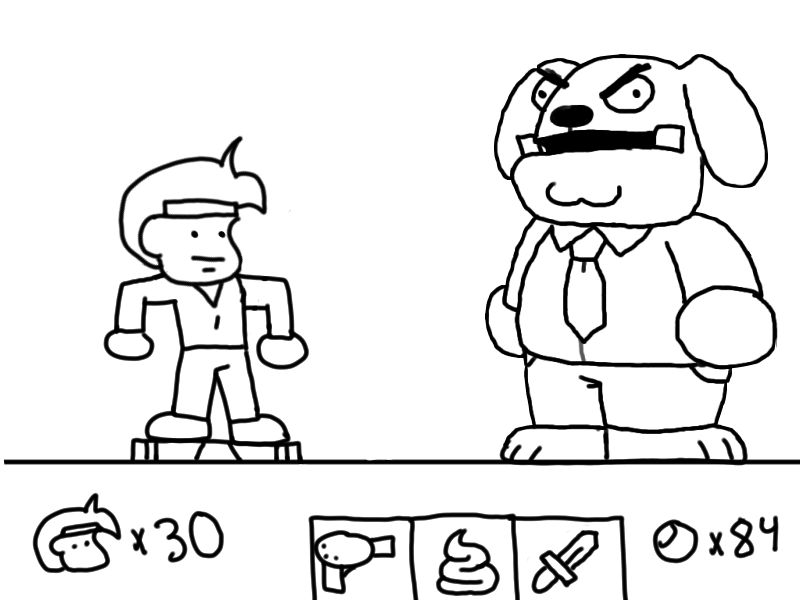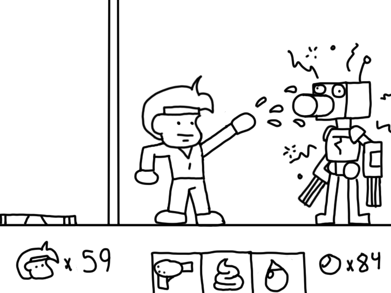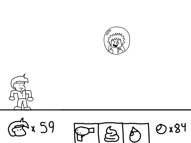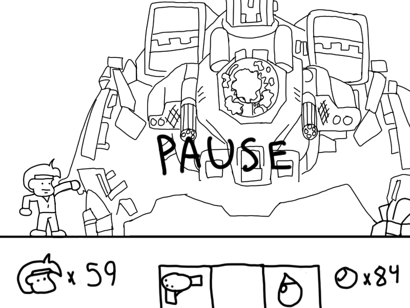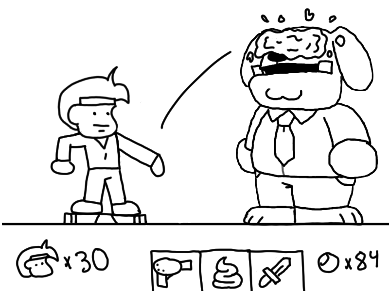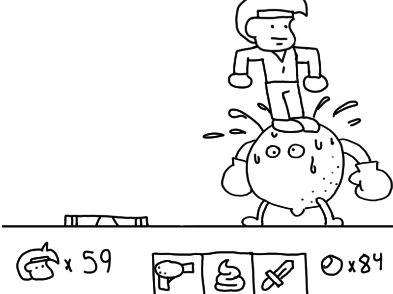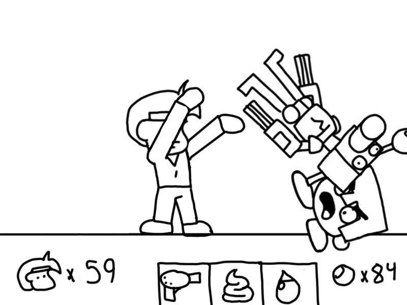 You are EQUIPPED with your trusty POTATO GUN, a POO, and the SWORD OF DROWS.