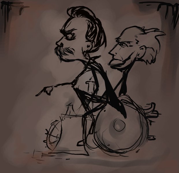 "Listen up, cur, we can get you that recommendation, but on a single condition. We are partaking in the annual philosopher wheelbarrow race. Just intercept the other teams as they arrive. If we win, we'll give you that recommendation."