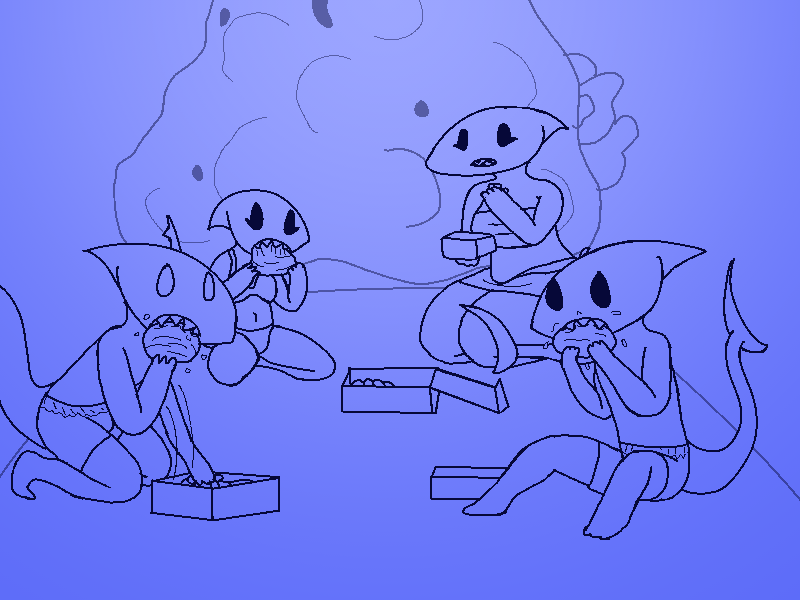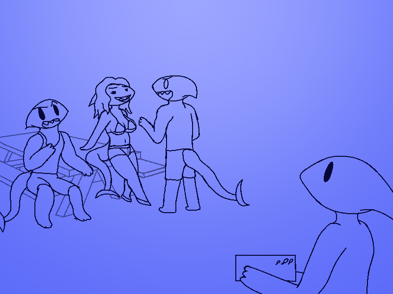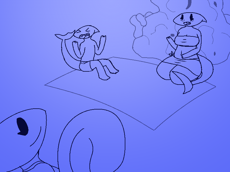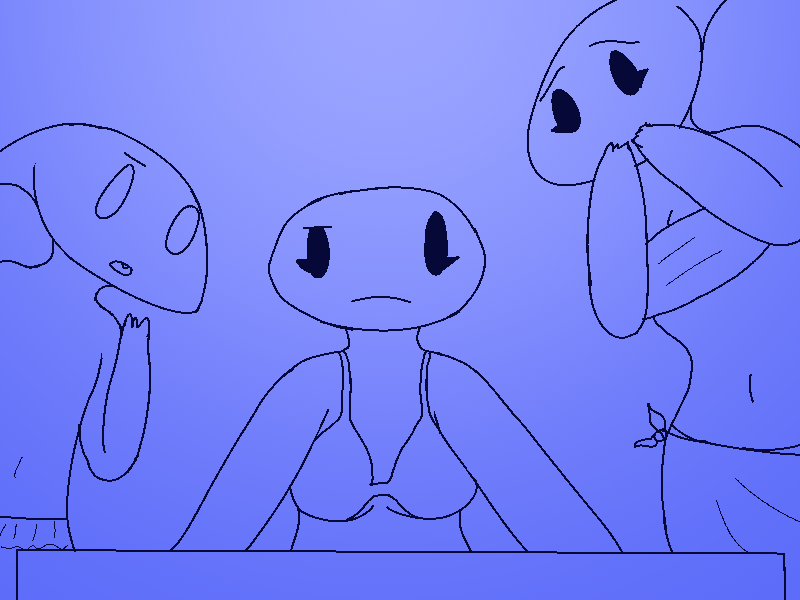 Finnelope: "Actually guys, hear me out! Here's what I was thinking: we're all single here, right? What if we all started dating each other? It'd be just like hanging out together like we always do, but y'know, with a little more romance. We could pair off in different ways and really get to know each other, and if our group ends up as two monogamous couples, none of us will be lonely. What do think? It's worth giving a try, right?"